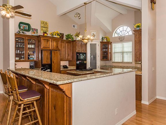 First time on market for this custom home. Great for large family or multi-generational home and still maintain privacy. This home offers 3 bed rooms, one en-suite, Game room, 2 guest bedrooms, custom sewing room or craft room, office with large laundry room and 3/4 shower. exceptional large gourmet kitchen with quality granite counters, open room concept and overlooks the family room with a fireplace a great place to entertain. Beautiful view of the public golf course, extra high beamed ceilings, wide entry, formal dining room, split floor plan with a massive master bedroom & lots of granite in master bathroom, custom solid wood cabinets throughout, souring beamed ceilings that adds to the many special details. A must see, contact listing agent for more information.