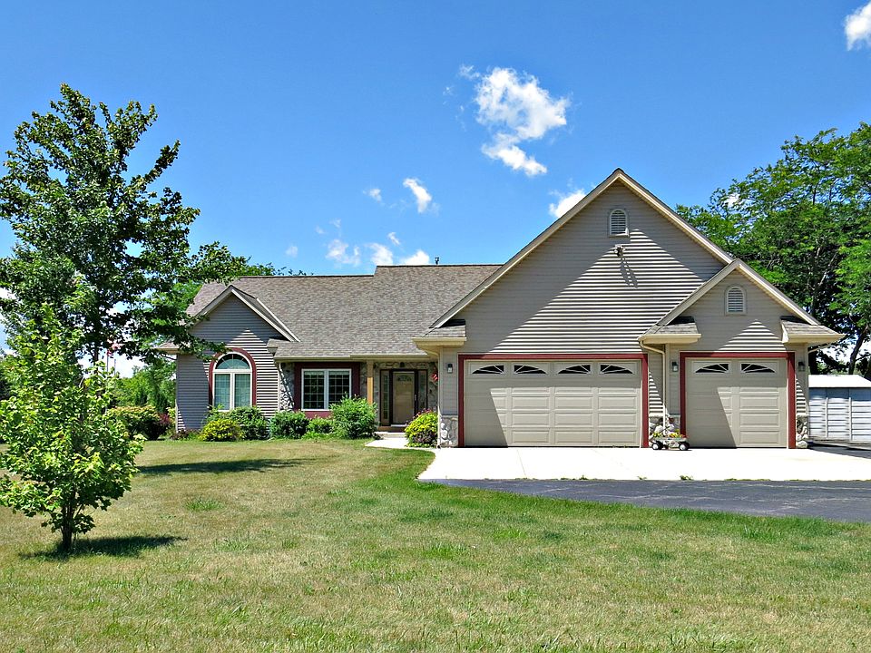 Call 262.719.8844 to see this home today! Country living at its best! An inviting split bedroom ranch home built in 2005 located on a picturesque 2.5 acre lot. The spacious kitchen features a raised breakfast counter, recessed lighting and patio doors. The great room boasts a vaulted ceiling and gas fireplace. The main level den/office with french doors could be easily converted into a formal dining room. Master bedroom suite has a tray ceiling, walk in closet, jetted tub and a shower stall. You’ll have plenty of room to entertain in the enormous lower level that has an egress window, two private rooms/offices, a full bathroom, plus a work shop/storage area. Convenient main level laundry. All this plus a whole house generator, central vacuum and a 12 month HSA home warranty.
