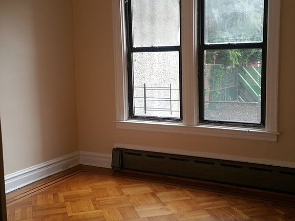 Enjoy direct access to your Backyard for BBQ and Lounging in this first floor Spacious and Sunny 2 bed/1 bath apt in a beautifully restored multi-family townhouse Entire apartment newly renovated! Extra high ceilings add to that spacious feel! Brand new windowed bathroom with stall shower and modern finishes. Refinished hardwood floors with original detail. Separate Formal Dinning room! Windowed Eat-in Kitchen with espresso cabinets, granite counter-top and brand new stainless steel appliances. Cable ready in the walls! Approximate room dimensions: Living room: 13 x 14, Dinning room: 12 X 11, Master Bedroom: 12 x 12, Second Bedroom: 12 x 8. Heat and water included! Great Apt, great location at a great price Forest Ave entrance to M Train blocks away and MTA bus on Fresh Pond Rd! Optional Private Garage available for $500 monthly. Call or email for a viewing!