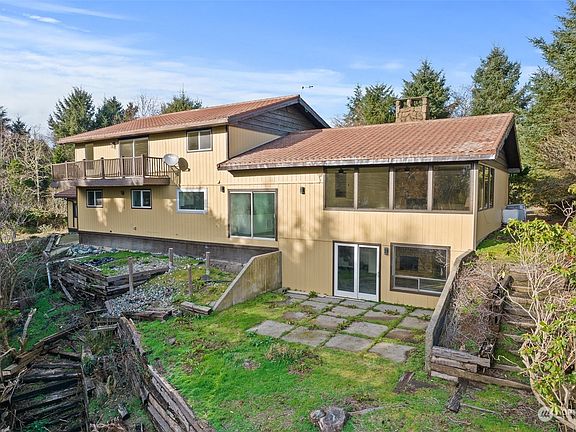 Enjoy breathtaking vistas of Baker Bay, the Columbia River, and the Oregon Coast Range from this expansive residence atop the Shalee Hill Neighborhood. Thoughtfully designed with 4 beds plus an office, this home awaits your personal touch. Abundant natural light floods the kitchen, living room, and primary bedroom through large windows. The impressive kitchen features a convenient island and stainless appliances. Retreat to the primary bedroom with its private deck and 5-piece bath overlooking the picturesque surroundings. The lower level offers additional living space with a cozy wood-burning fireplace. No HOA fees and includes a second parcel for view protection or potential development.