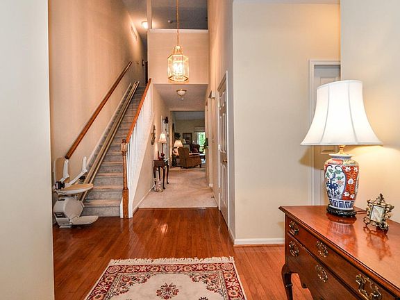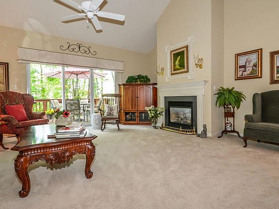 Hidden Meadow is one of the few 50+ communities with great appeal for seniors that want a spacious home with a basement and second floor. As you enter the foyer with hardwoods the great room is ahead with a gas fireplace, custom wall speakers and sliding glass doors to the deck that backs to open space. Back inside you have a nice area for your dining room and onto the full size eat-in kitchen with 42 inch white cabinets, double sink, electric range, garbage disposal and refrigerator. There is plenty of room for your table and chairs. The spacious master bedroom suite is on the first floor and has 9'ceilings, newer carpet, and walk-in closet, master bath with double vanity, stall shower and linen closet. The second bedroom has a generous size closet. The 3 piece hall bath has a tub surround and single vanity. It is very convenient having a large laundry room on the first floor for those weekly chores. Upstairs is the loft that can be used as an office, den or media room. The Acorn stair lift gives total access to the loft area. The bonus basement that is a floating slab, will delight all with the poured concrete walls, high ceilings and can be a workshop with great storage, exercise area, playroom for little visitors or a man/ladies cave or all of these!! The workbench in the basement is included. Lots of space for everyone. There is a high efficient York heater, a Rheem hot water heater with power vent and 200 amp circuit breaker electric panel. Pretty as a picture this adult community is conveniently located convenient to shopping, major roadways and restaurants.