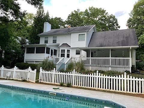 Work, Play and Relax!!! Lakefront-Pool home in gated Fairfield Plantation. Outside living and entertaining dreams come true at this home! Fish or kayak from your private dock. Fenced-inground swimming pool (brand new pool liner) Two areas to work from home. Inside welcomes you to a living room with a wood-burning fireplace, a formal dining room, and a formal living room/office. 3 extra spacious bedrooms, each big enough for king size bedroom suite plus a bonus room that can be used as a 4th bedroom. The living room opens to the kitchen which has upgraded stainless steel appliances, solid wood cabinets, bar seating, and an eat-in area. 2 full bathrooms upstairs, and a 1/2 bath downstairs. The closets and storage in this home are incomparable to any of the newly built ones. Fresh paint throughout main areas. Spacious garage.
