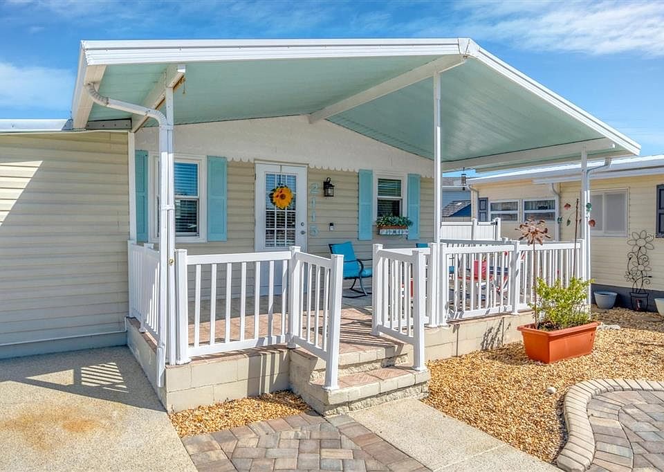HOW CUTE IS THIS? A cozy Beach Cottage with tons of curb appeal and a Front Porch to die for! Move right into this adorable 2 Bedroom, 2 Bath manufactured home situated on an oversized corner lot just a few short blocks away from the Marina in the highly desired Trailer Estates community. New paver front! Metal roof and newer Low-E windows (2017). Central AC, plus new Mini-Split unit in Living Room. Refrigerator, range and microwave (2019). New luxury vinyl floors in dining room and kitchen. Roomy 10' x 10' storage shed/workshop with electric and hurricane strapped. WDO tented (2018). You own the land. Boaters have direct access to Sarasota Bay from the Marina. Enjoy the large heated community pool, hot tub, gym and wood shop. The community buzzes with pickleball, shuffleboard, kayaking, horseshoes, bocce, dancing and more. A US Post Office on site. 10 minutes to the SRQ Airport. Convenient to shopping, restaurants, the Arts and everything Bradenton/Sarasota has to offer. Sold AS-IS with right to inspect.