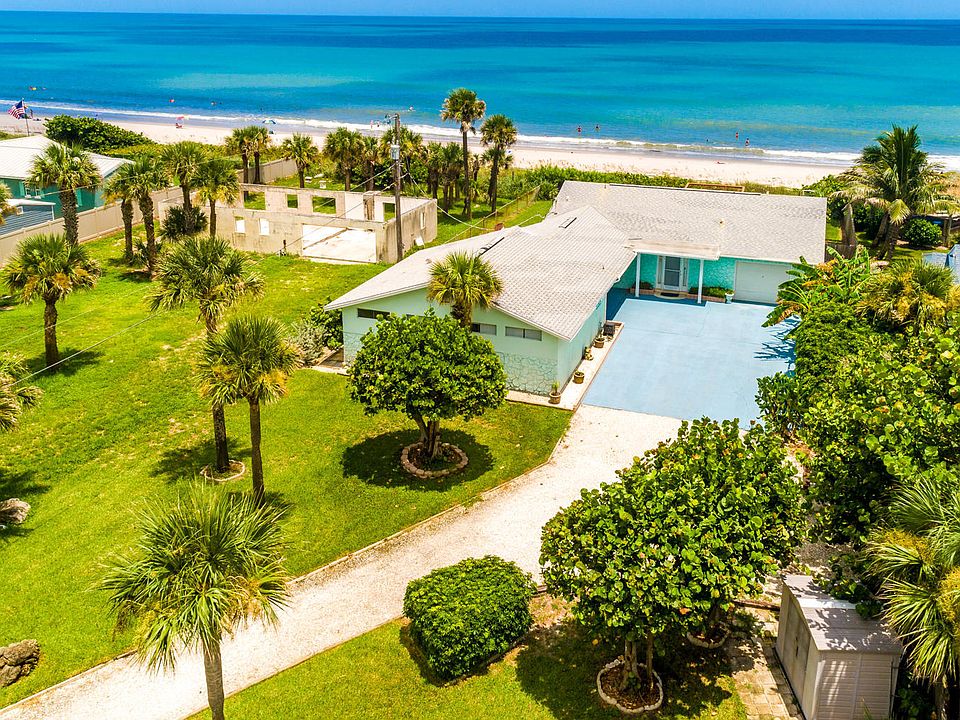 Rare opportunity at a single family, Oceanfront home in ultra convenient stretch of coast between the causeways in Indialantic. Approx 340' deep lot, so way off of A1A for a quieter day to day Oceanfront lifestyle. Fully equipped 2 bedroom, detached guest suite with 2nd kitchen, opens up all kinds of opportunities for the homeowner. 2 bedrooms in main home face the Ocean with an open living area in between and large covered porch off the back of the home. Property being offered essentially atland value, so don't miss out on this excellent opportunity to grab your piece of limited Oceanfront in this growing area !
