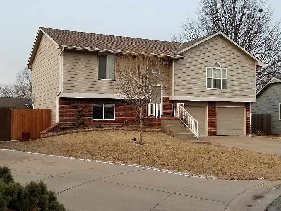 Priced to Sell! Built in 2006, 4 bedroom 2 bath ranch style bi-level is a hidden gem in established neighborhood. Tucked away in a quiet cul-de-sac in one of Kansas' top school districts, you'll appreciate being just minutes away from New Market Square, YMCA, WSU's West Campus, Maize Schools and so much more! Spacious home with rough in for 3rd bathroom or storage in the finished basement. Newer appliances and plenty of counter space in the kitchen with under cabinet lighting, perfect for cooking and entertaining friends around the island and large dining area. Cozy up to the gas fireplace in the adjacent living room. Enjoy sunsets and on the large wood deck just off the dining room and overlooking a large privacy fenced yard. Additional upgrades include a large master bathroom with corner tub and his and her vanities.