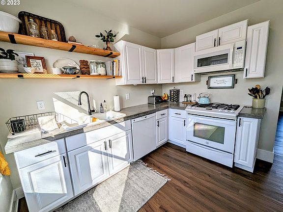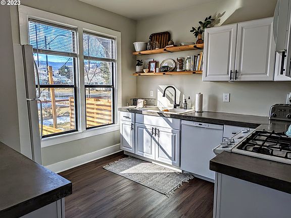 Beautifully remodeled 2 bed, 1 bath home now for sale in North La Grande! Featuring a newly refinished kitchen and bath with classic claw foot tub, new flooring throughout, new paint, patio and more! The large corner lot is near the Greenwood School fields, perfect for playing fetch with your furry friends. The home and property feature a stunning Mount Emily view to the north! Off street parking and a very functional storage shed with small workspace. Call today to view this home!
