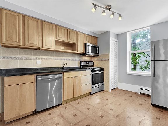 Occupying the entire second floor of a handsome brick three-story corner townhouse on a grand 26-foot wide lot, Residence 2 at 2115 New York Avenue is an expansive and unique 3 Bedroom + Den, 1 Bathroom fresh off a complete renovation with partial New York City views, an incredibly flexible layout with full living and dining room, tremendous storage throughout, lovingly restored hardwood flooring and period inlays, in-residence washer/dryer, and a kitchen with pantry and full suite of stainless steel GE and Whirlpool appliances, including a dishwasher. A palatial master bedroom with dual exposures and four windows is complimented by two generously sized bedrooms, a den (off living area) that could be used as a nursery or office, and a tiled bathroom adorned by a new crisp white marble vanity. Residence 2 at 2115 New York Avenue is one block from the NJ Transit express bus that services New York City (Port Authority) and is easily walkable to the best parks, shopping and entertainment in Union City and Weehawken as immediate proximity to Palisade, New York and Bergenline avenues and their constantly evolving array of restaurants and retail allows for access to goods and services seldom realized in New Jersey. It is one block from Ellsworth Park and its idyllic setting and children's play areas, two blocks from the renowned Reservoir Park, which features a well-maintained running track and sweeping, panoramic views of New York City's most iconic buildings, and three blocks from Gregory Park, which offers a basketball court and variety of children's play areas. And perfect for summer: Union City operates FIVE pools/kiddie pools that are all easily accessible! 1.5 Month Security Deposit / 1 Month Broker Fee.