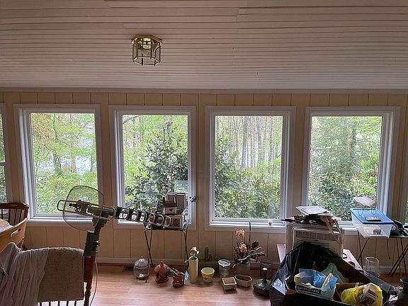 Lake Lanier Property for Sale that is sure to delight! 2115 Pilgrim Mill Circle sits on .85 acres of private land, has clear views of Lake Lanier, no steep steps, deepwater access, located right off GA-400 and has dock rights! This ranch home has 3 bedrooms, 2 baths and a full unfinished basement. This four sided brick home includes TONS of potential. Step inside and you are greeted with a separate foyer, formal living and dining room and views into the fireside family room. This updated fireside family room and sunroom includes bright luxury vinyl plank, a four season sunroom with views of Lake Lanier and this stunning property. This updated sunroom is where you will want to spend all your summer mornings, winter afternoons and fall evenings. Working kitchen with stained cabinets, laminate counters, tons of storage and eat-in kitchen! Master bedroom located at the back of the house with a window overlooking the lake and includes a separate tile bathroom with tub/shower combo. Two more well sized bedrooms make up this ranch on the lake! Fully unfinished basement includes tall ceilings, door to the backyard and half bath. As you walk down the lake you are surrounded by mature trees, an easy path and are met with the open views of Lake Lanier. Home includes a one slip dock with permit. With year-round deep water, located on a quiet cove but access to all Lanier has to offer you have to see this property before it's gone. Located exactly 43 miles from Downtown Atlanta you can be at the lake sooner than most. Come see for yourself 2115 Pilgrim Mill and let your imagination run wild! Total land well over an acre, gentle slope to the water, and large frontage on the lake, deep water year round, close proximity to GA 400 and Bald Ridge Marina.