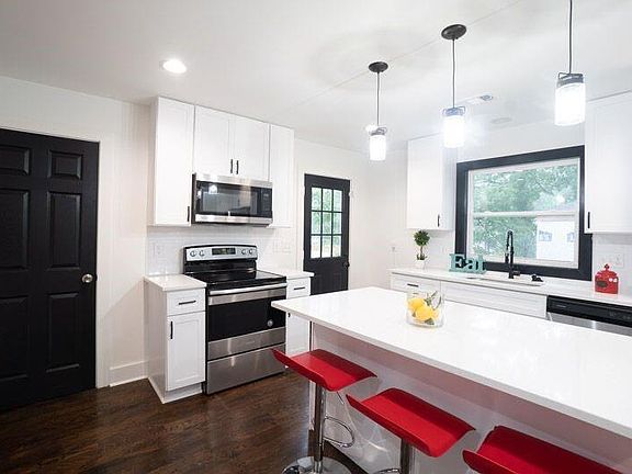 - Kitchen Features: Stone Counters, Kitchen Island, Cabinets White