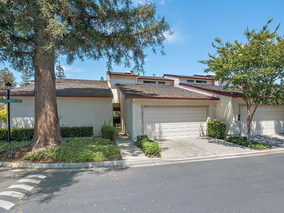Centrally located Santa Clara townhome with attached 2-car garage and lush backyard space. Incredibly convenient location close to top tech companies and attractions, including Levi's Stadium, Santa Clara Square shopping center, Costco, Whole Foods, restaurants, and Warburton Park and Pool. Easily accessible in the quiet Rancho Palma Grande community, the property is close to the community pool/spa and guest parking. Inside, enjoy updated flooring and beautifully remodeled travertine fireplace hearth and surround in the bright and open living/dining areas. The kitchen features updated granite countertops and large pantry. Tranquil backyard features paver patio, low maintenance artificial lawn and lush trees and flowers along the perimeter with an automatic drip system. 2 upstairs bedrooms each enjoy ample closet spaces, separate vanities areas, and a shared bath.
