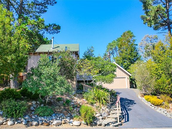 Fairytale Cambria Cottage - first time on the market! This cozy home was designed by a Disney artist, and the meditation garden was created over a one year period by a Disney landscaper. Besides being magically quaint, this home has everything you need, with two bedrooms and two bathrooms, and an oversized two car garage. Vaulted ceilings and ample windows in the home and garage make the property bright, and give the appearance that it is larger than the square footage indicates. There are mountain views from the front porch, living room, and kitchen. To keep warm on cool winter nights, there is a cast iron wood burning stove in the living room (plus a forced air unit for central heating). One bathroom has a tub and shower, while the other contains a colorful mosaic sink and a step-in shower. The garage has a beautiful wood ceiling, built-in cabinets, multiple windows, a deep sink, and washer and dryer hook-ups. The backyard has gorgeous areas for sitting, gardening, and meditating, with some pieces from the Hearst Castle blended into the interesting rockwork. In addition, there are French drains around the house. With new exterior paint and interior carpet, plus appliances included, this bright, warm home is move-in ready!