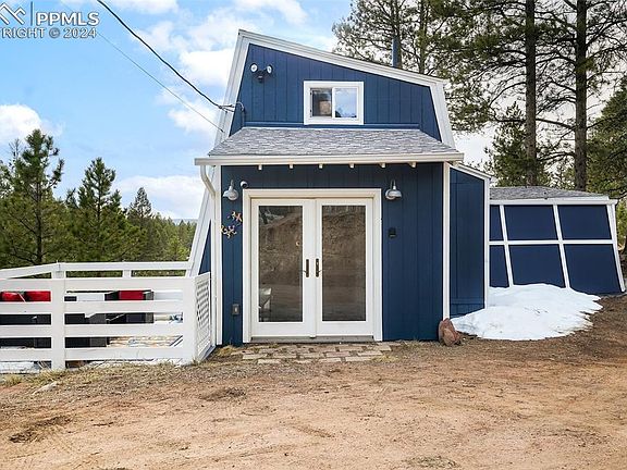 Nestled within the verdant beauty of the Fraser Experimental and Pike National forests on 2.3 acres, this Ridgewood home offers a tranquil retreat. Successful short term rental. New flooring extends throughout a thoughtfully designed layout flowing w/ fresh paint. A full wall of cabin windows draws natural light into the home inspiring a bright and airy atmosphere. Exposed beams and warm wood elements add rustic charm to the space. A wood-burning stove crafts a cozy setting for relaxation in the living area. The kitchen features a stainless steel range and all-white cabinetry. Step into a conveniently located laundry and mud room as you enter the home. Completely renovated full bath is positioned at the center of the home for easy access. Retreat to a generously sized bedroom offering ample closet space. Upstairs, a flexible loft presents space for guests, a fitness area or a home office. Enjoy peaceful moments outdoors on a deck and a balcony. Residents revel in a serene and secluded location w/ the convenience of close proximity to downtown Woodland Park. Water supplied by the Ridgewood Water District.