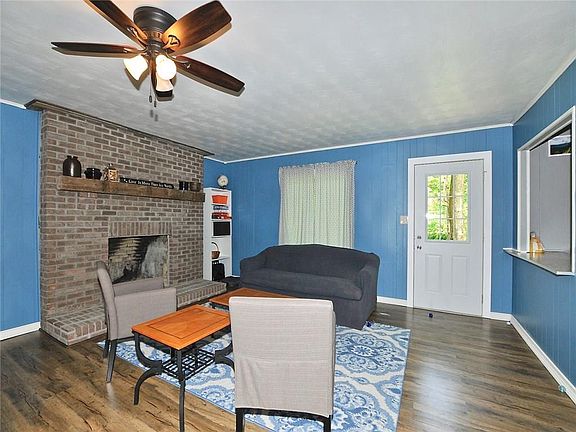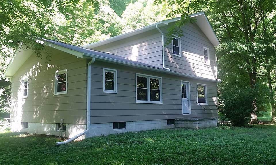 Great home on over 4 beautiful wooded acres with creek has been redone throughout with all new kitchen and stainless appliances, huge great room with floor to ceiling brick fireplace, new laminate flooring downstairs and original refinished hardwoods up. New thermal windows ! 3 bedrooms 1.5 baths, full basement, detached garage with workshop area and mini barn. Separate laundry room on main floor. New propane tank on the way with 250 gals to get you through next winter !
