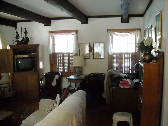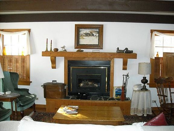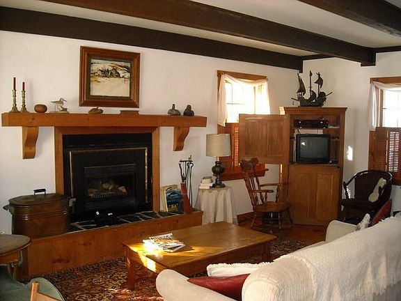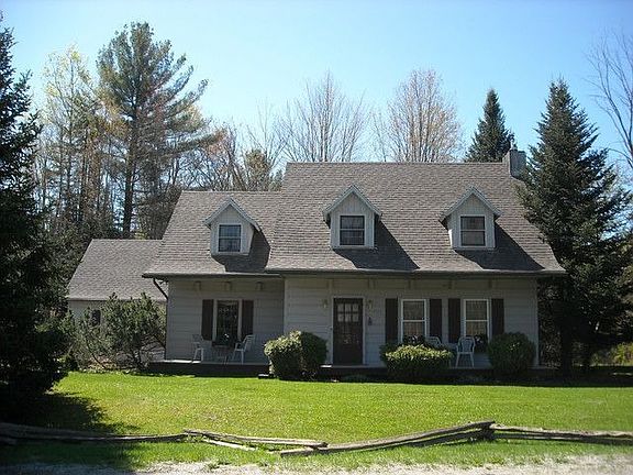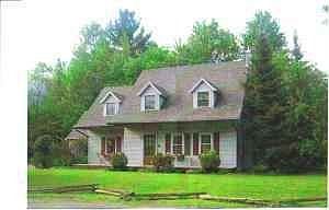 Idyllic Dovetail Post & Beam home with formal dining room, large living room featuring gas insert fireplace, sliding doors onto large rear deck, many updated kitchen appliances, propane hot air furnace and hot water heater new in 2009. Kitchen has hardwood (thought to be Oak) flooring, rest of first floor and larger guest bedroom have pine floors, rest of bedrooms have carpet. Second floor bedrooms have electric heat but baths have hot air heat. Attached 2 car garage added in 1986. Beautifully landscape lot with babbling brook running near the Northern boundary. Property across street from Emily's Covered Bridge. Property is equipped with Fairpoint DSL and Stowe Access cable TV. Most furnishings in the bedrooms included in sale. Exception list will be forthcoming.