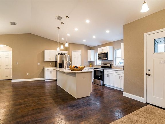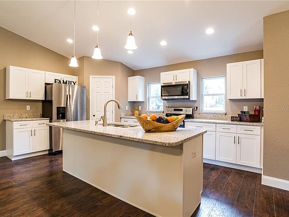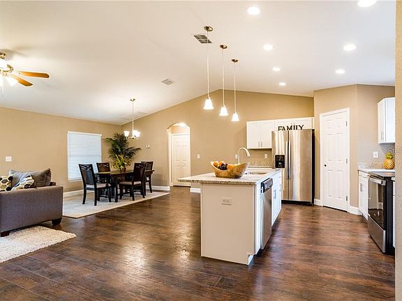 Under Construction. This brand new block home offers 3 bedrooms, 2 full bathrooms and open floor plan. The cathedral ceiling makes for open, spacious living, dining and kitchen areas. Kitchen has large island, pantry and double sink. Sliding glass doors lead to the covered lanai. Full master suite with walk-in closet. Split bedroom floor plan. An enclosed 2-car garage finishes off this beautiful new home. Indoor laundry room with washer/dryer hook-ups. Architectural shingles. USDA $0 DOWN FINANCING AVAILABLE. Estimated completion date of 03/19/2021. Pictures are of a similar home that had previously sold.