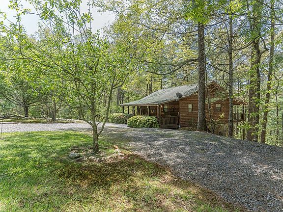 Tired of crowded neighborhoods where everyone seems to know your business? Wish you had a property that felt like a secluded escape yet kept you close to town? This 2-bedroom, 2-bathroom cabin could be the answer. Resting on 1.85 acres, this expansive 1,008 sq ft cabin ensures the space and privacy you crave. Step inside to be welcomed by warm wood floors and matching tongue-and-groove ceilings, creating a harmonious and inviting atmosphere. The open-concept living area includes a charming fireplace for cozy evenings, while the matching wood trim throughout ties everything together. Outside, the deck wraps around three sides, offering ample room for entertaining or simply relaxing with a view. The ramp for handicap access ensures everyone can enjoy the property, and the circular gravel driveway makes parking and turning a breeze. The unfinished basement is a versatile space for those seeking extra storage or a canvas for future projects. Despite the property's secluded feel, you're only minutes away from downtown Murphy, offering easy access to shops, restaurants, and entertainment. With a walking path winding through the woods, it's a property that provides peace of mind and the perfect balance between seclusion and convenience. This cabin is ready for its next chapter—will you be the one to write it? Schedule your viewing today to find out.