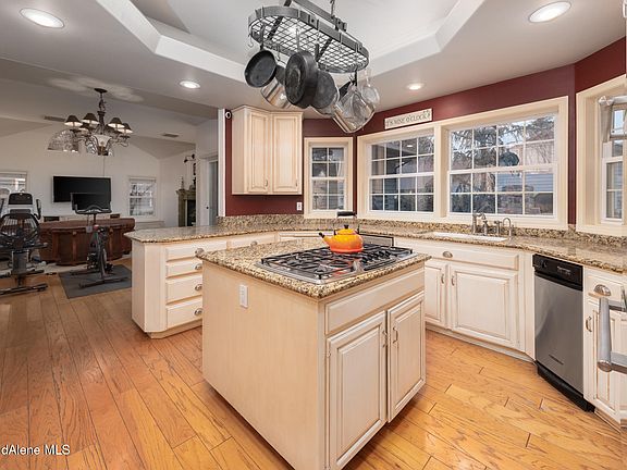 Possibilities are endless in this elegant 5 bedroom, 5.5 bath estate, on a double corner lot, close to everything CDA has to offer. Situated minutes from the public golf course, KROC Center, Spokane River, shopping, medical and more. Home is part of the well established Fairway Forest neighborhood, with its tree-lined streets and tranquil setting, you will be amazed you are in town. The grand entry and gourmet kitchen with views of the new back deck and outdoor eating and fireplace are a must-see. The extravagant main floor master with its fireplace, vaulted ceilings, and private deck make you feel like you are on vacation every day. The lower floor boasts its own kitchen area, 90 % efficient furnace, and water heater, making multigenerational living an amazing option.