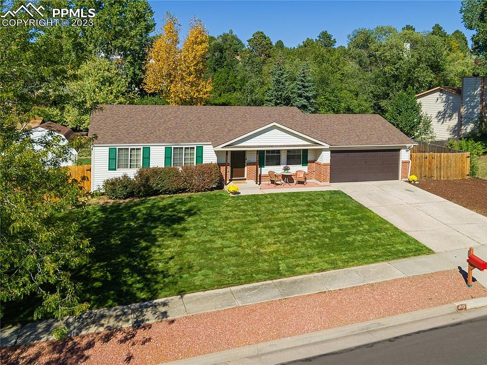 Absolutely charming, turn-key retreat with rare, 2-car attached garage on a beautiful 1/4 acre lot within 5 min of UCCS. Just about every corner of this gem has been thoughtfully updated with a brand new roof, new carpet, fresh interior paint and modern lighting. Perfect main-floor living filled with natural light. The kitchen features new, high-definition laminate countertops and tile backsplash, new Samsung range/oven, LG microwave and an oversized stainless sink with a view onto the backyard. You'll appreciate premium touches like the Thermador dishwasher and LG ThinQ fridge. Both bathrooms have undergone recent renovations with new luxury vinyl plank flooring, stylish vanities and new lighting. The primary suite features a beautiful, new shower surround with glass doors and all new fixtures. The 20' x 11' covered deck creates a peaceful, serene oasis for relaxation and outdoor gatherings. For those with recreational vehicles or toys, the side yard offers double-gate access, providing a secure spot for storage. Additional storage options are abundant with a spacious storage shed, 2-car garage with insulated garage door, and a 4-foot crawl space to accommodate all your belongings. Plus, the convenience of a Maytag washer and Whirlpool dryer are included. Please note the back of the lot has a fully enclosed fenced area of mature bushes that would need to be removed to be usable - good for privacy, but not for kids or pets. Situated in a prime location, convenient to UCCS, University Village shops and restaurants, Templeton Gap Trail leading to Palmer Park, and the Monument Valley Trail System, perfect for walkers, hikers and cyclists. Don't miss this great investment opportunity to own a home that combines modern comfort, privacy and an unbeatable location.