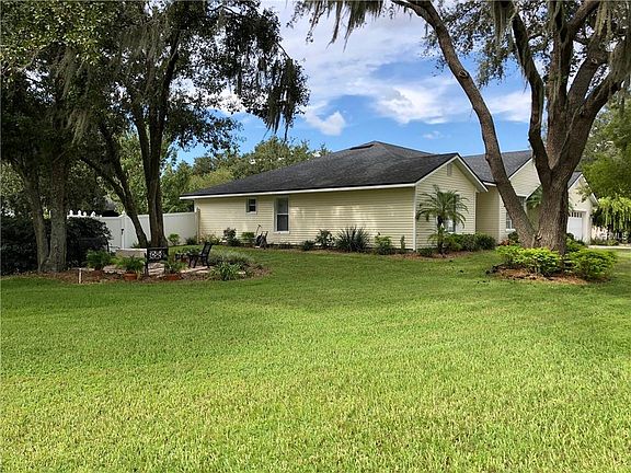 Nestled in beautiful Deer Brooke featuring 4 bedrooms/ 2 baths. The great room is open to the kitchen & features a breakfast bar. The ceilings are 10ft in the main areas The sliding glass doors hide completely into the wall opening the great room to the large enclosed lanai. The kitchen includes stainless steel appliances, a closet pantry, new recessed lighting & a center island with extra drawers & electrical outlet. The dining room features crown molding and both dining room and breakfast nook have wainscoting with bead board, very elegant. The master bedroom suite is very spacious and has the stylish "barn door" leading into the bathroom with a full length mirror on the other side. The master bathroom has been completely renovated and offers dual sinks with marble vanity, brand new soaking tub and separate shower with porcelain tile. Also you will find separate "his" and "hers" walk in closets with built- in shelving. The flooring consist of brand new upgraded carpet in all bedrooms, brand new "hand scraped" laminate that appears to look and feel like wood, and upgraded porcelain tile. The inside laundry room has plenty of cabinets, a sink, a broom closet and the best feature ever...a built-in ironing board. Other great features included are an 8x12 shed out back, an attic with pull down ladder for access in the oversized two car garage, new paint in the interior, beautiful custom drapery and a water softener. The home has been completely re-plumbed and roof replaced in 2016 Call today for appt!