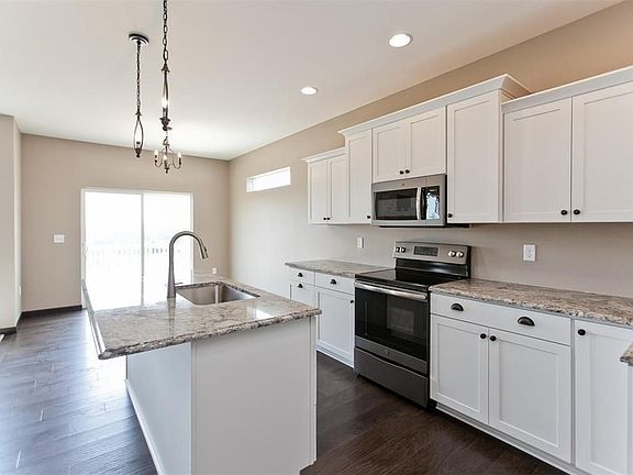This beautiful ranch home is situated on a private cul de sac with a spacious backyard, perfect for the whole family. Inside the open great room there are large windows for natural light and a stunning floor to ceiling stone fireplace. The kitchen features white cabinets with beautiful granite countertops. Off the dining nook the deck overlooks a huge backyard and beautiful views of rolling hills. The first level is finished off with a large master suite, two bedrooms and full bathroom. The walkout lower has a spacious finished rec room, bathroom and two additional bedrooms. Builder has 70 years of experience with over 12,000 homes built in Eastern Iowa. Builder provides written 10 year warranty and may consider a trade on this home. This home is HERS(Home Energy Ratings Score) tested and exceeds HERS Standards.