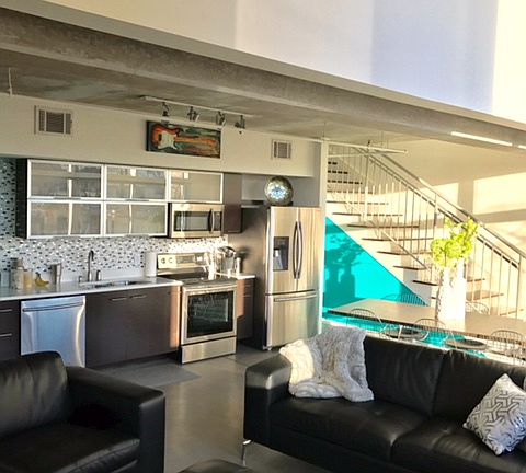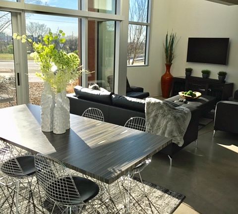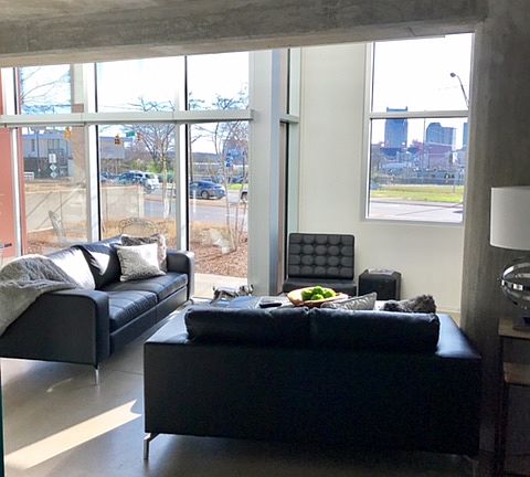 Amazing first level, 2 story condo with spectacular views of Nashville downtown skyline. One-bedroom with office space. Beautiful contemporary industrial condo with Incredible floor-to-ceiling windows. Gated parking, dog park, concierge, open layout! There is a gym on the first level behind the 5th & Main Office.