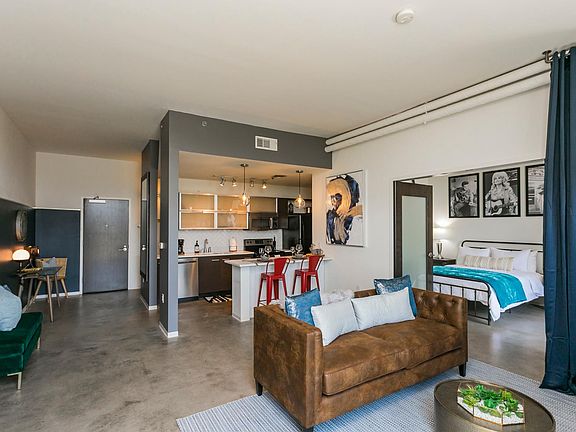 You'll have a thoughtfully designed pad to call your home, complete with mid-century inspired, industrial-chic decor; cool concrete floors; contemporary art; and a luxe, en suite bathroom. There's also a rooftop terrace and a fitness center if you need to let off some steam.