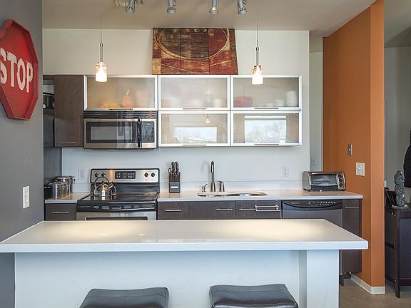 This Contemporary East Side Flat has European Style w/ American Sensibility. Offering: Amenity Roof, Downtown Views, Upscale OnSite Commercial Space, Secure Access &Parking. HoA Dues Cover Part of Electric & Water (Ask for Details).