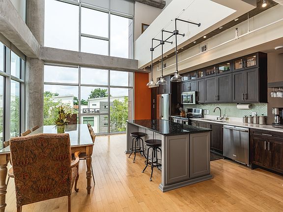 Modern 2 level Corner Condo with a phenomenal location minutes to downtown & walking distance to all East Nashville has to offer. This unit features two story windows to take in incredible sunset views of the gorgeous courtyard. Featuring 2 primary bedrooms with large walk-in closets and spacious bathrooms. An updated kitchen with a large island and wood floors throughout create a warm and inviting space while still having a contemporary feel. The buildings amenities include concierge service, security features, a rooftop patio, a gym & a restaurant. This unit has 2 deeded secure parking spaces and a storage unit on the same floor. This location is perfect to enjoy the current and future development happening in Nashville!