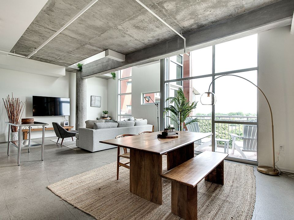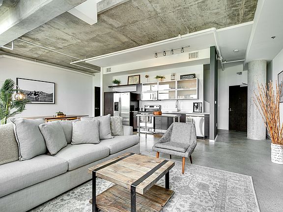 Top floor condo! Spacious, two story condo in the front of East Nashville. It's RARE to find a condo this large downtown Nashville. Open concept, tall ceilings, exposed beams, and floor to ceiling windows. Balcony on the first floor, plus additional private balcony off the bedroom. 5th & Main has an onsite fitness center, pavilion with grills, dog park, expansive rooftop deck with city views, a concierge staff with mail drop at your door, and a gated parking garage. Plus, walking distance to Nissan Stadium and a handful of East Nashville restaurants and activities. 5th & Main is on the edge of the highly anticipated East Bank development. The East Bank will consist of over 300 acres being transformed into the new football stadium, greenways, transit, commercial space, businesses, residences, storefronts and more.