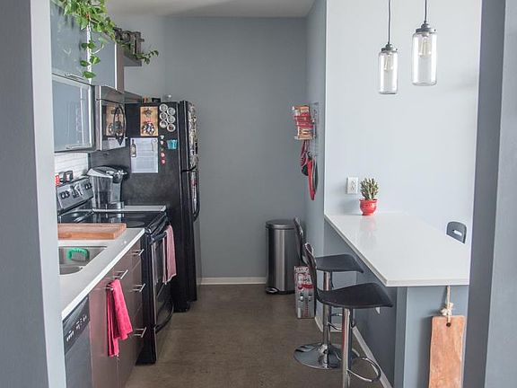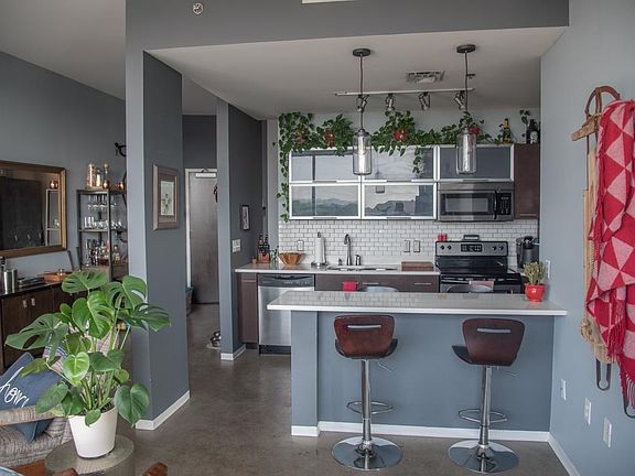 AVAILABLE 9/1/25 KEY FEATURES: Year Built: 2008 Sq Footage: 865 sq ft. Bedrooms: 1 Bed Bathrooms: 1 Bath Parking: 1 Garage Space | Guest parking Lease Duration: 1 Year Deposit: $1,950 Laundry: In Unit Floor/Unit: 5th floor, #516 Property Type: Condo DESCRIPTION: This is a top floor, near corner unit for rent - one of the few in the building with a full wall of floor-to-ceiling windows-- complete with city/ downtown skyline views and TONS of natural light. This condo unit is directly across the hall from the building's large rooftop terrace with incredible panoramic views of downtown in addition to an alternate view over 5th & Main's expansive community courtyard and grilling area. Safe in a secured-access building, and complete with a concierge and on-site security. Gated and covered garage parking space included. Condo style is modern with concrete floors, open floor plan with swinging double doors leading into the bedroom (shown: removed in photos), and high-end fixtures and appliances. Washer/ Dryer are included in laundry room near entry with extra room and shelving for storage. Bathroom features a large walk-in shower. Wired for Google Fiber. Pet's are permitted. Renter pays utilities.