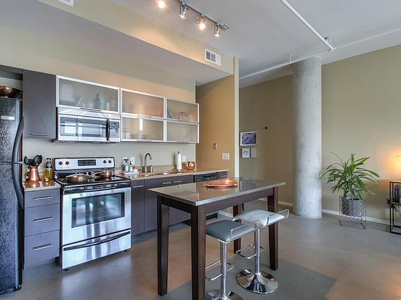 Top floor loft condo at 5th & Main. Large 1 Bed ; 1.5 Bathroom open floor plan, with floor-to-ceiling windows and stainless steel appliances. Close to everything East Nashville and downtown have to offer. Secure building and 1 parking space. Storage Unit 2E included! HOA includes trash, grounds maintenance, insurance and concierge services.