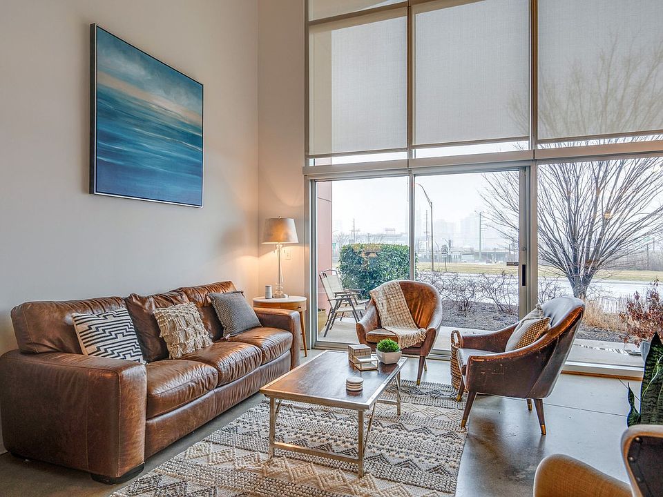 This stunning 2-story loft offers a perfect work-from-home environment with a private balcony, two dedicated underground parking spots, two bedrooms, two bathrooms, and floor-to-ceiling windows. With two den living areas, you'll maximize your comfort in this large, modern condo overlooking a beautiful city skyline. Located just 5 minutes from Broadway and trendy East Nashville, this is one of the best locations in Nashville. Enjoy high ceilings, a large open layout, and floor-to-ceiling windows with a 270-degree view. This fully furnished corporate rental requires a minimum 30-day rental period. The apartment boasts in-unit laundry, high ceilings, floor-to-ceiling windows for maximum light, and two living room areas. The fully set up kitchen is perfect for all your culinary needs. Large walk-in closets provide extra storage, and the apartment features a large walk-in shower in the downstairs en-suite and a large soaking tub in the upstairs bathroom. Enjoy the courtyard with a community grill and seating, an on-site restaurant, and city skyline views from the rooftop deck. The apartment includes two dedicated secured garage parking spots and a concierge package delivery service. Pets are allowed on a case-by-case basis with an initial pet fee of $350. Unauthorized pets are charged at $100 per night, so please make arrangements prior to your stay. There is also a mandatory monthly cleaning at the guest's expense. Situated just 5 minutes from Broadway and with trendy East Nashville in your backyard, this apartment is in one of the best locations in Nashville. You'll have easy access to the vibrant city life and all its attractions. Check-in must be arranged in advance and is available during office hours, with standard check-in at 3 pm. Early check-in or late checkout is possible for a $55 charge, subject to availability. Please treat the home with care and report any damages. Do not use towels for makeup removal to avoid additional charges. A $100 cleaning fee applies for glitter or decorations left behind. No smoking inside the house, with a $500 charge for evidence of smoking. Keep noise levels down, especially after 10 PM, with a $250 disturbance fee for noise complaints. No parties, drugs, or illicit activities are allowed, with a $250 service fee if emergency services are called. Unauthorized guests are charged $10 per person per night. The doors lock automatically, and a $115 lockout service fee applies after hours. Booking guests must be at least 21 years old and sign a Resident information packet outlining HOA rules. Ensure vehicles and valuables are secured as we are not responsible for any loss. This loft is work-from-home perfect, offering a conducive environment for remote work with its spacious layout and ample natural light.