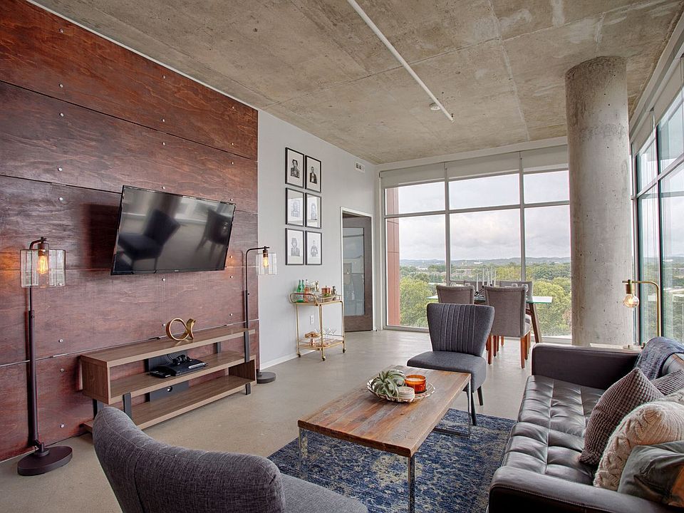 Experience the vibrant energy of Nashville from the comfort of this stunning condo located in the heart of Downtown. With floor-to-ceiling windows, this 1-bedroom retreat offers breathtaking city views that will leave you in awe. This modern condo features a spacious bedroom with a luxurious king-size bed, perfect for couples or solo travelers seeking a stylish getaway. The open-concept living area is designed for relaxation, equipped with a comfortable seating arrangement and a television for your entertainment needs. The fully equipped kitchen boasts modern appliances, including a refrigerator, microwave, coffee maker, and dishwasher, making it easy to prepare meals during your stay. Enjoy your culinary creations in the cozy dining area, or take your dining experience outdoors on the private balcony, where you can soak in the city skyline. Additional amenities include air conditioning, central heating, and high-speed internet access, ensuring your comfort and connectivity throughout your stay. Located in East Nashville, you'll find yourself just moments away from a variety of attractions, including museums, botanical gardens, and vibrant nightlife. Whether you're here for a romantic escape or a city adventure, this condo is the perfect base for exploring all that Nashville has to offer. The property also features enhanced cleaning practices, providing peace of mind during your visit.