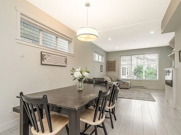 Welcome to “Hutton” – a beautifully upgraded 3 bed, 3 bath townhome in Willoughby Heights. Featuring a bright white kitchen with quartz counters, gas range, spacious island, and custom pantry storage. The open living space includes built-in entertainment units, new laminate flooring on the stairs and upstairs hallway, and a main floor powder room. Upstairs offers a spa-inspired ensuite, walk-in closet with built-ins, and two additional bedrooms. Enjoy a west-facing patio with BBQ hookup, plus an upgraded yard with artificial turf and retaining wall – perfect for kids and entertaining. Located steps from parks, schools, Willoughby Town Centre, Costco, and transit. This is the perfect blend of style, comfort, and location. Don’t miss out – book your showing today!