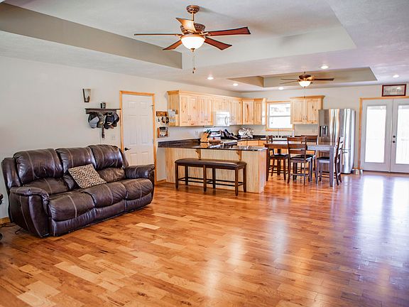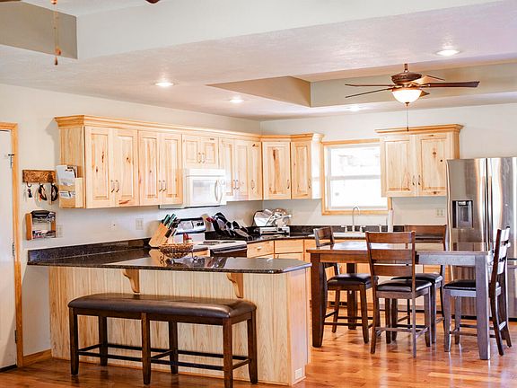 Introducing a swanky country property encompassing 55.48 acres, this home offers an idyllic setting for those seeking a fenced sanctuary for cattle, horses, sheep, and more. Nestled in an area teeming with white-tailed deer and wild turkeys, the property boasts captivating sunset views that will leave you speechless. Just minutes away from Stockton Lake, this stunning estate features a spacious 30'x60' shop and a convenient circular driveway.The home itself is a true gem, featuring expansive living areas open from the front to the back door, encompassing the living, dining, and kitchen area. The kitchen is a culinary enthusiast's dream, showcasing exquisite granite countertops, gleaming hardwood floors, and ample wooden cabinets for all your storage needs. You will also find one large bedroom with a walk-in closet and a full bath. The fully finished basement includes a bedroom, a bathroom, and an open space that would function as a home gym, home office, or an additional family room.Step out onto the decks and patios, which offer generous space for entertaining guests and are accessible through attractive French doors with concealed blinds for easy maintenance. The large fire pit area is thoughtfully designed for year-round enjoyment.This remarkable property is a true oasis, combining natural beauty, luxurious amenities, and a prime location near Stockton Lake. Don't miss the opportunity to make this attractive home and sprawling acreage your own.