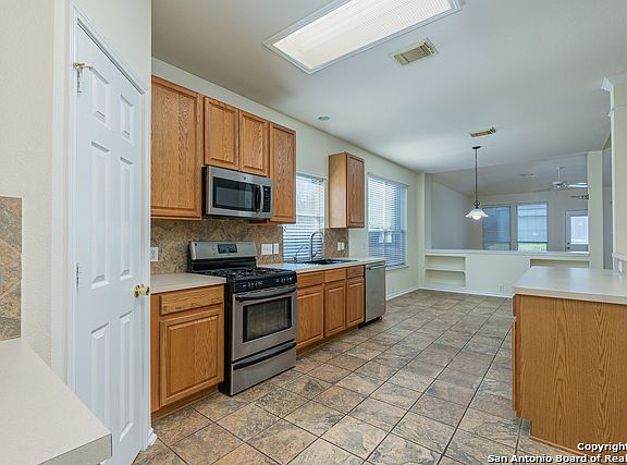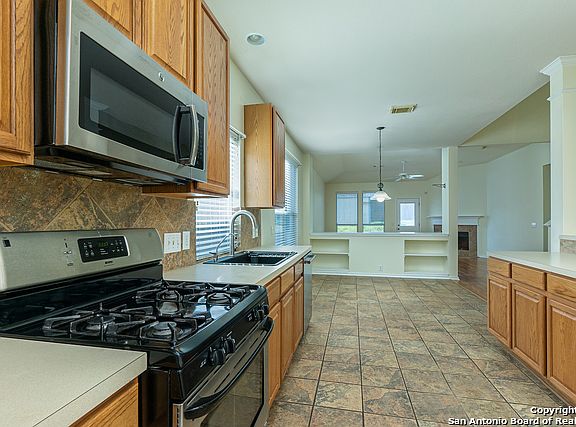 This well-maintained and freshly painted 5-bedroom 2.5 bath home in gated Encino Rio is ready for you! Features include master bdrm down, large game room upstairs, family room, fireplace, eat-in kitchen with built-ins, gas cooking, new carpet, big windows, dual vanities, separate shower and tub, large walk-in closet in master, Nest t-stat & Ring doorbell, storage shed in backyard with extended patio and terraced yard. Great location, excellent schools, shopping & close proximity to the neighborhood park.