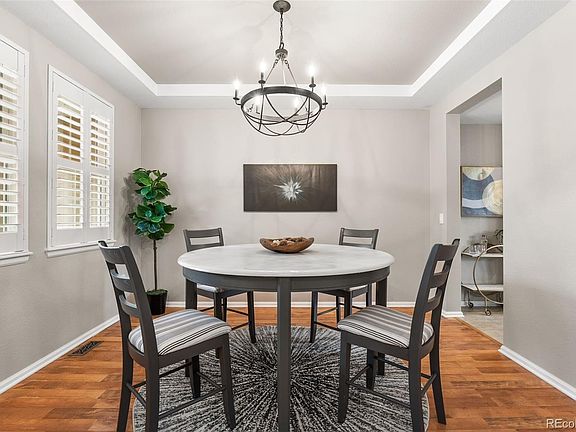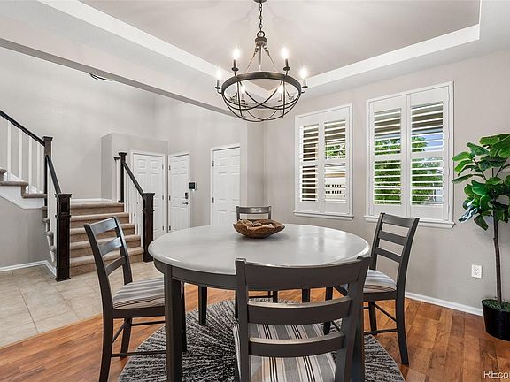 This extensively updated and impeccably maintained 6 bedroom, 4 bath home on a private lot in a quiet cul de sac in The Conservatory is now available! Featuring a vaulted entryway with tile flooring that leads past the dedicated dining room, this home opens to a beautifully updated kitchen with leathered quartzite countertops, updated backsplash, new appliances and updated lighting. The living room is anchored by an accent wall with an updated gas fireplace with marble tile surround and remote controlled window coverings. Plantation shutters are installed throughout the home for an elevated touch of added luxury. A private nonconforming bedroom on the main floor could serve as a guest bedroom or office with a 3/4 bath featuring updated countertops. Upstairs features more impressive finishes with a sitting room that could serve as a second home office, two oversized bedrooms each with mountain views, an updated bathroom with dual sinks and the large Primary Suite featuring mountain views, plantation shutters, and a barn door for added privacy to the ensuite bath. A finished basement offers an opportunity for multigenerational living with two additional bedrooms, an updated 3/4 bath, bonus room and wet bar with refrigerator and microwave. An impressive home gym completes the lower level. Enjoy quiet moments on the extended concrete outdoor patio with pergola overlooking a private and professionally, mature landscaped backyard. Located within walking distance to Frontier K-8, clubhouse and the neighborhood pool and easy access to the E-470 corridor. Located minutes from shopping, dining, entertainment as well as the Aurora Reservoir that features a swim beach, fishing and paddleboarding. Also located within a short 20 minute commute to either Denver International Airport to the north, or Denver Tech Center to the south.