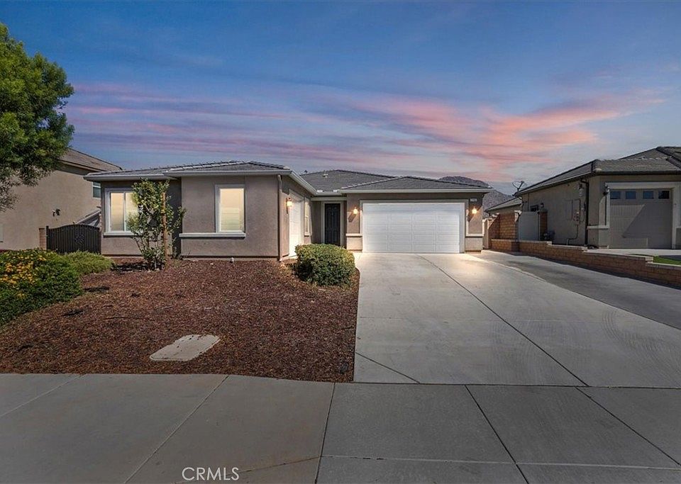 Situated on a quiet cul-de-sac sits this wonderful single-story home with 4 bedrooms, 3 baths with unobstructed views. The home provides plenty of parking with its expanded driveway and 3 car garage. The covered front patio is the gateway into the wide hallways and tall ceilings of this spacious open floor plan. In the front of the home you have 3 bedrooms, a large in door laundry room and full bath. The rear of the home has lots of open space where the kitchen, family room and dining room sit. A bonus bath and large family room/game room are located in the middle of the home. The spacious main bedroom, walk-in closet and main bath are also located in the rear of the home providing the owner privacy. The backyard has unobstructed views and provides open space for your imagination to design a new pool and entertainment area. This home comes with solar and many builder upgrades that include, powder half bath, upgraded appliances, in ceiling sound system, shower enclosure and soaking tub, upgraded kitchen cabinets, stainless steel farm style sink, gas stubs in backyard, gas fireplace, smart thermostat and smart key lock front door. Solar system has 12 panels, 4.2 KW. Located near to Grand Terrace. Minutes from University of Riverside, Loma Linda University and Loma Linda Hospital. Conveniently located near to the 1-10, 215 and 60 freeways in addition to shopping, dinner and entertainment areas.