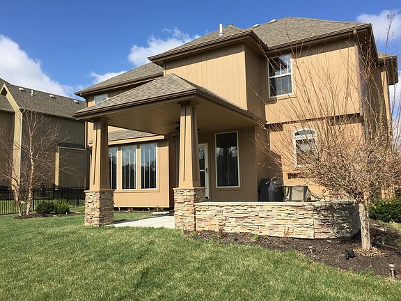 Beautiful 5 BR / 4.5 bathroom 2-story move in ready James Engle home in coveted Prairie Point! Features include: - 3,400 sq ft - Walking distance to elementary (Meadow Lane) , middle (Prairie Trail), and high school (Olathe NW) - Huge walk-in pantry with built-in desk - Beautiful kitchen with center island and granite countertops - Oil rubbed bronze fixtures - Multiple ceiling fans throughout the house - Sprinkler system - Butler’s pantry with wine fridge - Covered stone patio with outdoor fan and overhead lighting - Fenced backyard with abundant landscaping and trees throughout - New basement carpet in 2013 - Gas fireplace - Audio system throughout house - Wood blinds in all windows - Dark hardwoods throughout majority of main level - Finished daylight basement with wet bar, 5th bedroom and full bath - Short walk to community pool/play area - Storm doors on both front and back doors - High traffic carpet on all stairs - Spacious second floor laundry with mud sink and storage adjacent to master closet - Walk-in tiled shower, jetted tub and double sinks in master bathroom - Neutral paint throughout - Quick access to multiple highways - Taxes = $5,300 - HOA = $600