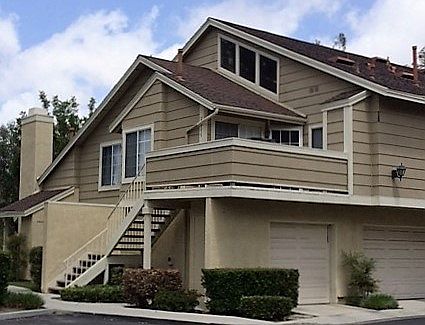 Beautiful end unit with no one below! Two bedrooms, two full baths, PLUS an extra loft area that could become the perfect office, play area or craft space. Carriage style townhouse with a one-car garage directly below the unit. The townhouse is located in a quiet interior location for maximum views and privacy. Vaulted ceilings and ample windows make this 1,008 sq ft home light, bright, and cheery. Well maintained laminate floors throughout the main living area, dining area and kitchen. Look out your kitchen window to view your large private balcony, perfect for summer BBQ. Back inside you will find a cozy gas fireplace located in the living room, and convenient stacked washer and dryer. The Whispering Hills community offers 3 pools, spas, kids play areas, acres of greenbelt, and ample guest parking. Award winning Saddleback Valley schools and Pittsford Park are nearby. Close to shops, restaurants, freeway, Irvine Spectrum and more. Great location, and a great townhouse!