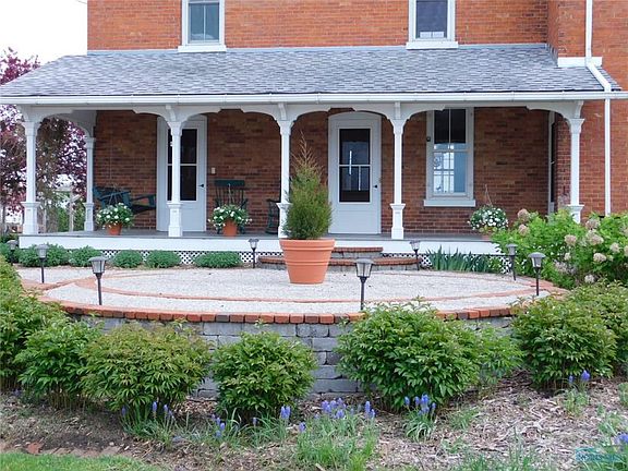 Beautiful home has a story .Site was settled by first Europeans in German Township.1835. In 1870 this brick farmhouse replaced the log home.Owners respecting its heritage w/beautiful upgrades , Front courtyard,inviting front porch. 3+ Bed rms, 2 baths. Prairie & perennial gardens,3 bay garage brick oven, Patio/Arbor, Summer Kitchen. Enjoy Wabash trail . (sellers reserve the Weathervane on barn)