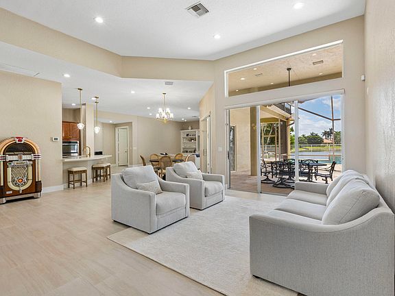Wow! Fully renovated 5 bedroom, 4.5 bath home on one of the best south facing lake lots in The Estates of Boca Falls. Upon entering, walls were removed to create an open living space full of natural light. Living area has new wood look tile floors & custom entertainment center. The kitchen features Quartz countertops with subway tile backsplash and farmhouse sink & new Samsung appliances. All bathrooms are fully renovated with new tile floors, tile showers, vanities with quartz countertops & new fixtures and toilets. The bedrooms have new luxury wood-look vinyl floors & new baseboards throughout. The lakefront backyard is perfect for outdoor Florida living with a screened-in travertine patio, heated salt-water pool and fenced turf yard. Roof replaced 2022, 2 HW heaters 2023. Must see! Boca Falls features two 24 hour manned-gates and a third gate that leads to desirable Waters Edge Elementary School. Beautiful clubhouse with kitchen, fitness center, heated resort style pool and kiddie pool, outdoor basketball court, playground and tennis courts with league play. Walking distance to Osprey Point Golf Course and South County Park with dog parks, amphitheater, tennis courts, baseball fields, Coconut Cove waterpark and more! Boca Falls has NO equity membership!