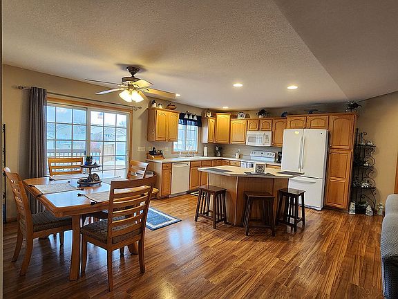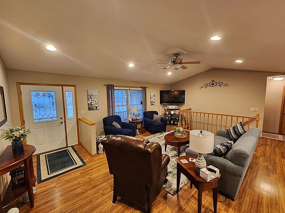 A ranch-style home in Camanche’s Murphy’s subdivision, built in 2003, features an open-concept living room, kitchen, and dining space. The main level has 1530 square feet of living space. It includes 3 bedrooms; shared bathroom and the master bedroom has a private bathroom and walk-in closet. The basement has a large family room and a non-conforming bedroom, bathroom and plenty of storage space. The property includes a 3-car attached garage and a 30 X 36 detached garage built in 2023. Detached garage has epoxy flooring and is heated and air conditioned. The backyard is fenced with a patio and deck along with an 18 ft above ground pool installed in 2023, the property also has a sand point irrigation system.