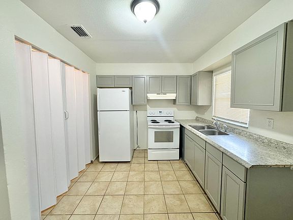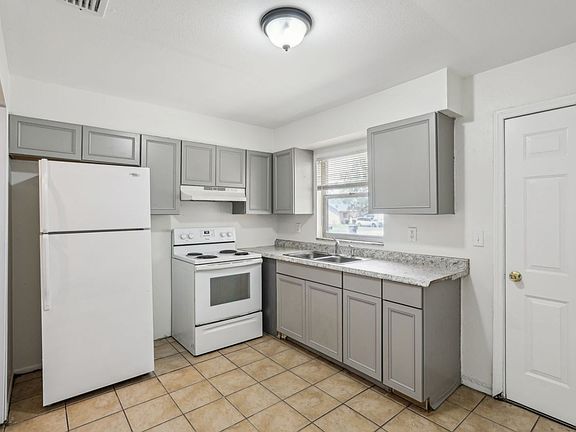 Step into this clean and inviting 2-bedroom, 1-bath duplex, perfectly situated on a corner lot. The home features all ceramic tile flooring throughout for easy maintenance. The living room flows seamlessly into the kitchen, which includes a convenient washer/dryer utility closet. Both bedrooms are generously sized with built-in closets, and the bathroom offers a tub/shower combination with a newer vanity. Enjoy comfortable living in this delightful space!