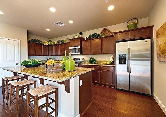 This beautiful two-story Camelot home is part of the Next Gen family. The impressive entry showcases the grand staircase with vaulted ceilings and a nook area, which is ideal for a tucked away office/organization space. The first floor offers a brightly lit & open great room that is open to the dining room. The modern kitchen is equipped with granite countertops and stainless steel appliances with a must-have breakfast bar. Upstairs, is the amazing master suite that includes a deep soaking tub, dual sinks and a big walk-in closet. The large laundry room, conveniently located near the master suite, provides lots of storage and a folding counter. In the separate but adjoining private suite you will find a roomy, separate living area, complete with its own private bedroom, bathroom and a beautiful kitchenette with a French door refrigerator, 5-in-one convection microwave oven and plenty of cabinet space. Call your realtor today for your own private showing. Pictures are of model home.