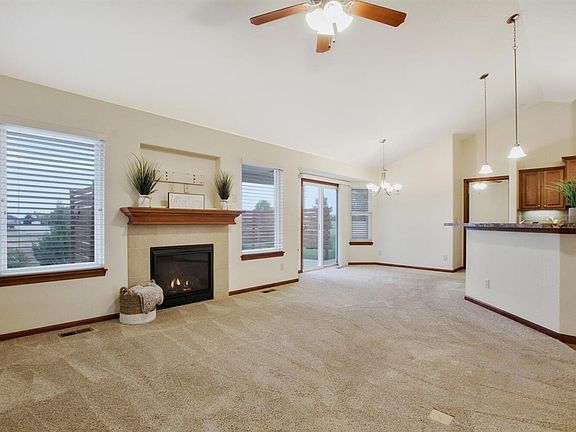 LOOK! >>>Hard to find in our area! ZERO ENTRY home with 3 car garage, quiet cul-de-sac location in desired Sand Creek Station. Beautiful curb appeal with stone accents. Yard is easy to maintain with sprinkler system and well. HUGE private covered patio. Lovely landscaping. Custom interior includes vaulted ceilings, gas fireplace and large kitchen with all appliances included. GAS COOKING! You will LOVE the large walk in pantry and eating bar. Master with coffer ceiling detail, walk in closet, as well as a secondary closet. Bath with oversized walk in shower. Main floor laundry. Split bedroom plan. Basement is fully finished with 4th and 5th bedrooms, large rec room with plenty of room for game area or pool table, dry bar and storage with built in shelving. Enjoy the area award winning golf course. Easy highway access, near shopping, YMCA and Newton Medical Center.