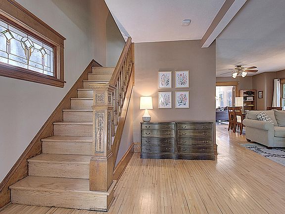Charming 3BD, 2BA Mac-Groveland Dutch Colonial, boasting all of the desired St Paul nostalgia accented with modern updates. Exquisite original (and unpainted) millwork throughout, including horizontal 6-panel oak interior doors, hand-carved stairway baluster, and stained-glass transom windows. Some modern amenities include maple kitchen cabinetry with quartz counters, newer roof, Andersen Renewal windows, attached garage, and fenced yard. Easy living with a cozy and enclosed front porch, outdoor patio space, and a south-facing sunroom (or use as a main-floor bedroom). Only blocks from cafes, Groveland Elementary, Groveland Tap, super market, Minnehaha Falls and Highland Village. Enjoy!