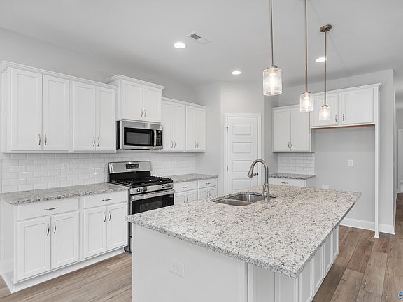 Move-In Ready!! New Price. This home qualifies for interest rate from 3.75% or up to $10K toward closing costs!! Limited time offer! Modern luxury in North Ridge, nestled in the Cullman City Schools district. This vibrant community offers serene ambiance with a community pond, sidewalks, and street lights. Entertain effortlessly in the spacious open floor plan featuring elegant white cabinets, granite countertops, and gas range. Cozy up by the natural gas fireplace or unwind in the master suite tile shower. Up to 5 bedrooms. Features include craftsman detail, taped porch columns, custom built-ins, tankless water heater, gutters & screens. Upstairs, a 370 sq ft finished bonus room.