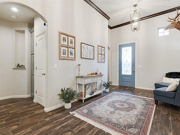 Inside, you’ll find thoughtful features throughout, including wood grain tile flooring, a spacious dining area with room for an additional seating area, and a large utility room with a sliding barn door. The garage entry is complete with a built-in mud bench, ideal for keeping things tidy and organized. The three-car garage adds even more flexibility and storage.