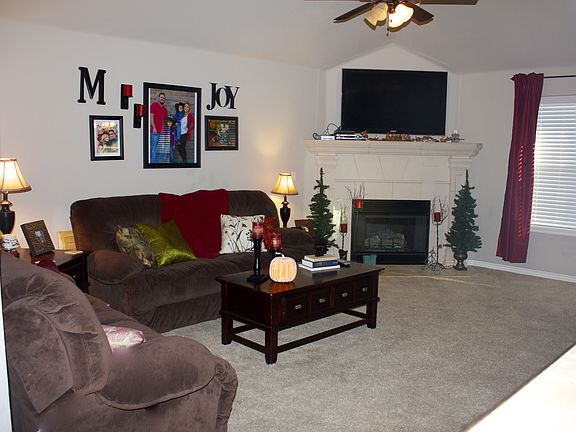 Beautifully maintained immaculate home! Front yard offers neat & tidy landscaping. Covered front porch and entry. Open floorplan. Spacious living area has gas log fireplace, and tall ceilings. Cheerful Kitchen with ample cabinet storage, updated lighting and stainless appliances. Desirable split floor plan. Large private master suite has tall ceilings. Master bath has large soaker tub, walk in shower double vanity with built in storage. Dual walk in master closets with area for storage organization with shelving system! Secondary bedrooms are large with walk in closets. Guest bedroom has separate private access to the bathroom. Faux wood blinds throughout. Spacious Laundry Room. Enjoy the outdoors with a fully fenced back yard and patio. ** STORM SHELTER** This this home has it ALL!! Located in award winning Mustang Schools. This convenient location is minutes from Airport, Hobby Lobby, FAA, Tinker, Downtown OKC, I-40, Outlet mall, and Restaurants!